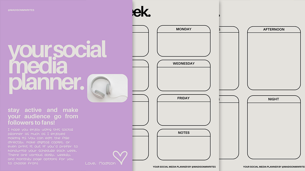 A PDF file containing various planning spreads for you to use to map out your social media content.